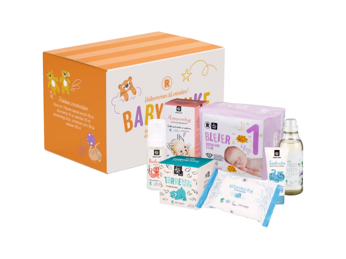 Som nybakt eller kommende forelder kan du få en gratis babypakke fra REMA 1000. Den inneholder nøye utvalgte, trygge produkter til babyen og er perfekt for å teste hva som passer best for dere – helt uten kostnad.