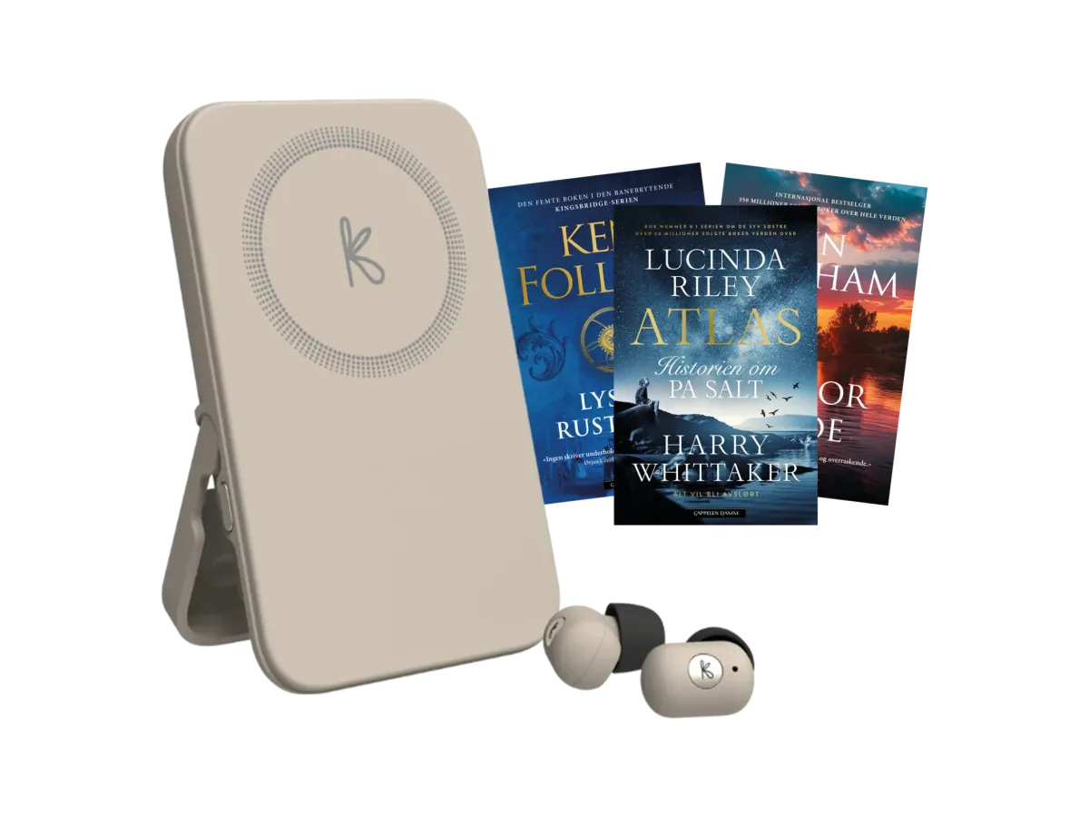 Bli medlem i Bestselgerklubben og få Kreafunk toCHARGE GO powerbank med innebygde ørepropper og 3 valgfrie bøker i velkomstgave.