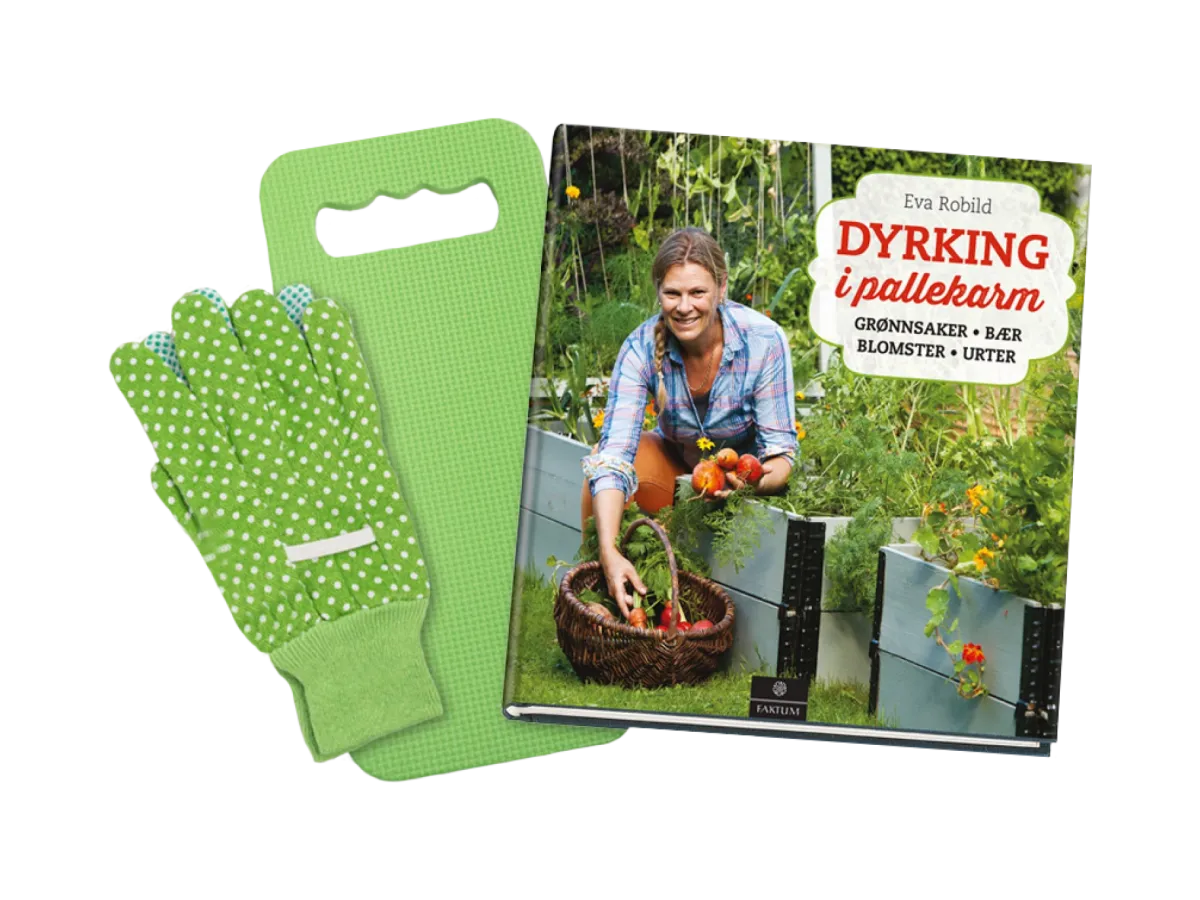 Som ny abonnent i HJEM & HAGEklubben får du en flott hagepakke med bok om dyrking i pallekarm, hagehansker og knepute i velkomstgave.